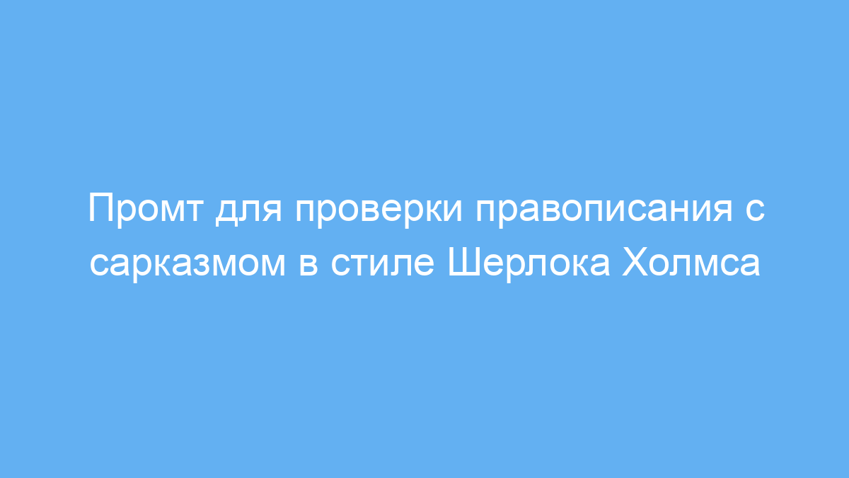 Этот промт предназначен для тех, кто хочет проверить правописание и грамматику с необычным подходом — в стиле знаменитого детектива Шерлока Холмса, но с саркастическим чувством юмора. Он помогает выявить ошибки в тексте и исправить их, добавляя ироничные комментарии, что делает процесс обучения или редактирования менее скучным.
