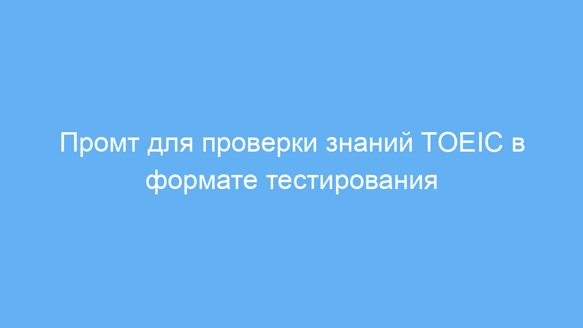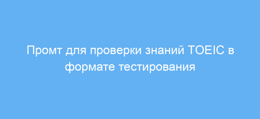 Этот промт создан для тех, кто готовится к экзамену TOEIC и хочет эффективно проверить свои знания. Он помогает систематизировать тренировку, имитируя реальный экзаменационный процесс с выбором ответа из четырёх вариантов. Такой подход позволяет отработать навыки понимания английского языка в разных форматах: незавершённые предложения, заполнение текста и чтение с пониманием.