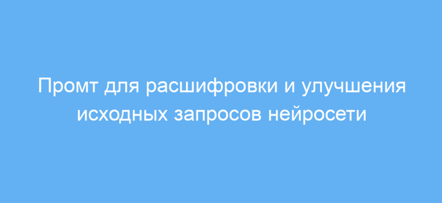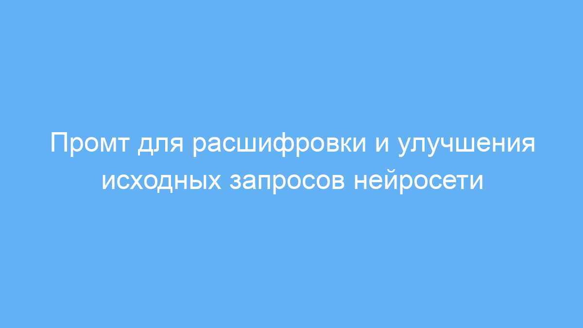 Этот промт предназначен для пользователей нейросетей, которые хотят повысить точность и ясность своих исходных запросов (промтов). Часто при работе с нейросетями бывает сложно сформулировать идеальный запрос с первого раза. Неправильно составленный промт может привести к неполным, нечетким или нерелевантным ответам.