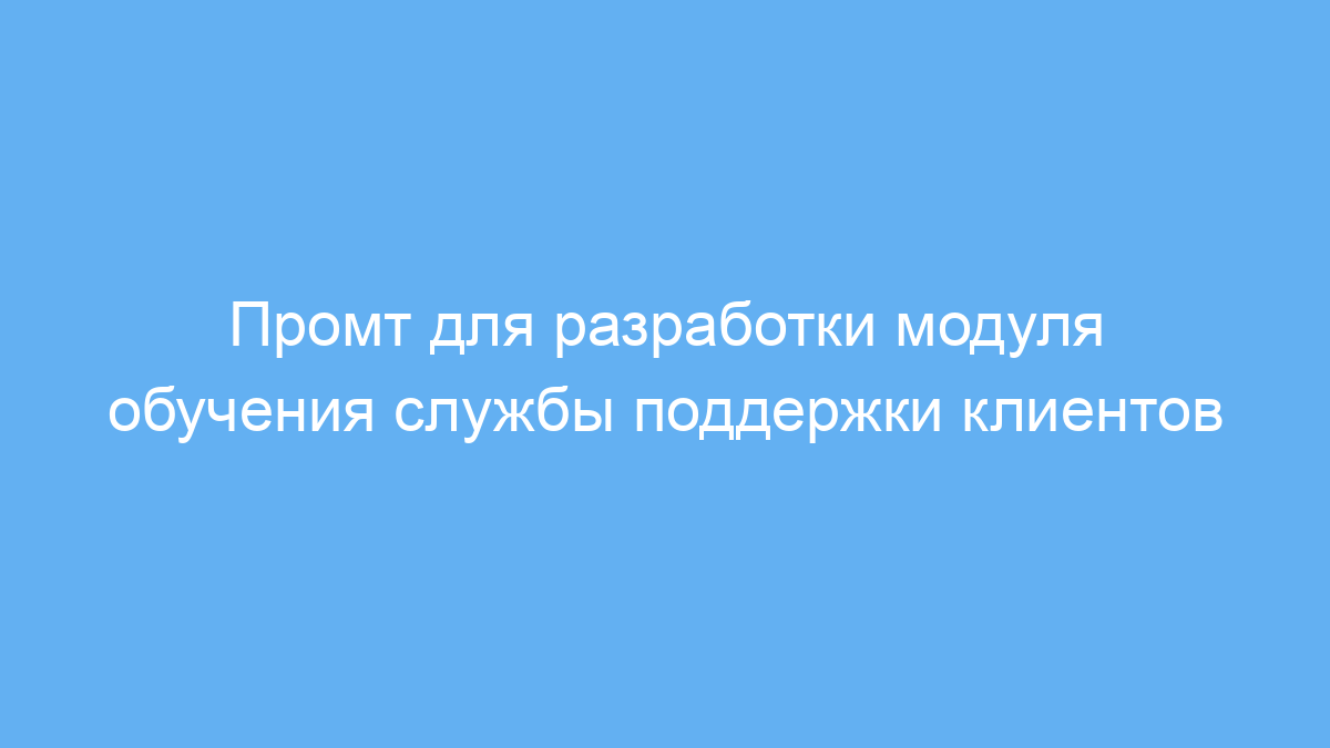 Этот промт предназначен для менеджеров по обучению, HR-специалистов и руководителей служб поддержки клиентов в компаниях разных отраслей и размеров. Если вы хотите создать адаптированный обучающий модуль именно для вашей службы поддержки, этот промт поможет быстро и эффективно собрать всю необходимую информацию для разработки тренинга.