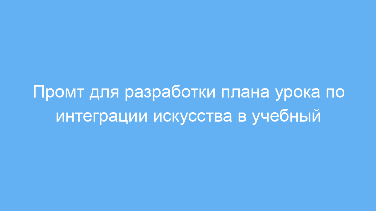Использование этого промта значительно экономит время при подготовке интересных и структурированных уроков, в которых искусство помогает усилить восприятие учебного материала. Это облегчает планирование занятий и делает обучение более эффективным.