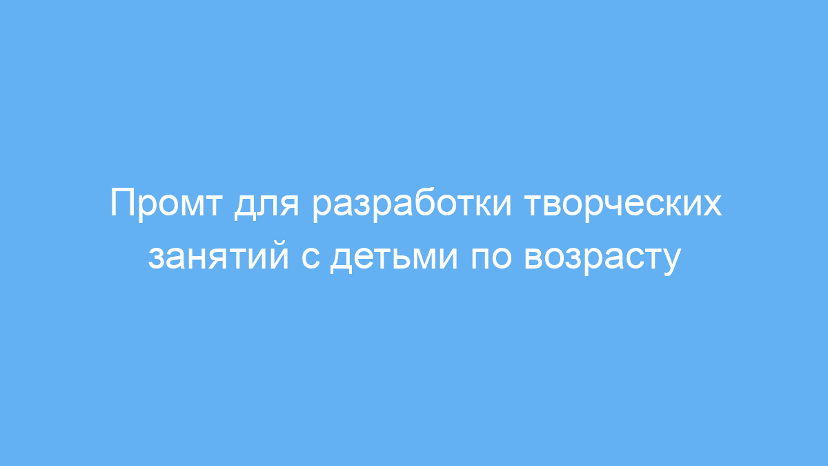Данный промт помогает быстро и просто получить персонализированные идеи творческих и развивающих занятий для детей разных возрастов. Это экономит время на поиски, дает структурированные инструкции и помогает родителям и педагогам создавать полезные активности, учитывая особенности ребенка.