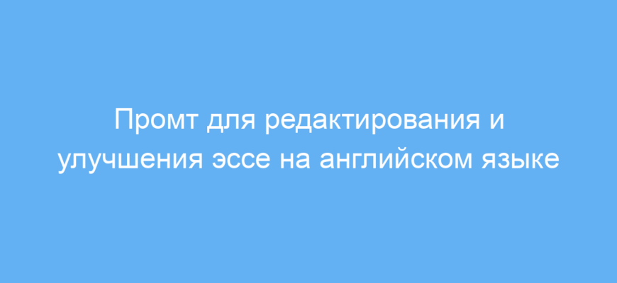 Для эффективной работы с этим промтом рекомендуется заранее подготовить текст эссе и чётко сформулировать, какие аспекты требуют особого внимания: грамматика, стиль, структура или логика изложения. Перед отправкой промта уточните сроки выполнения, чтобы нейросеть могла адаптировать ответ под ваши требования.