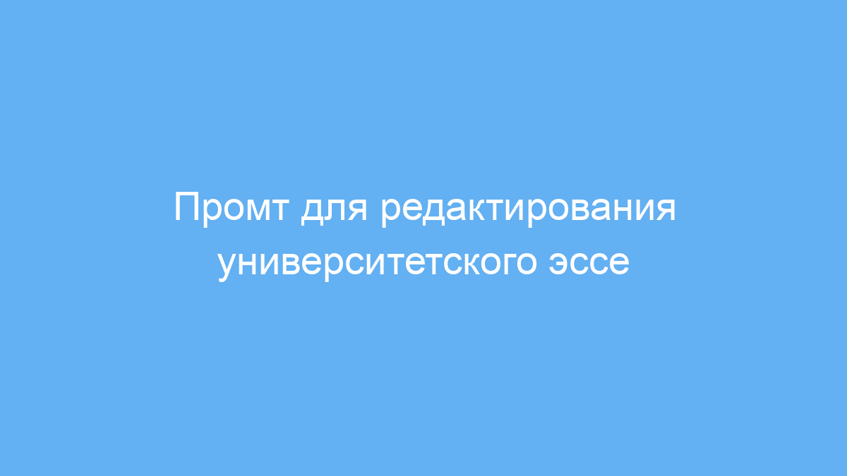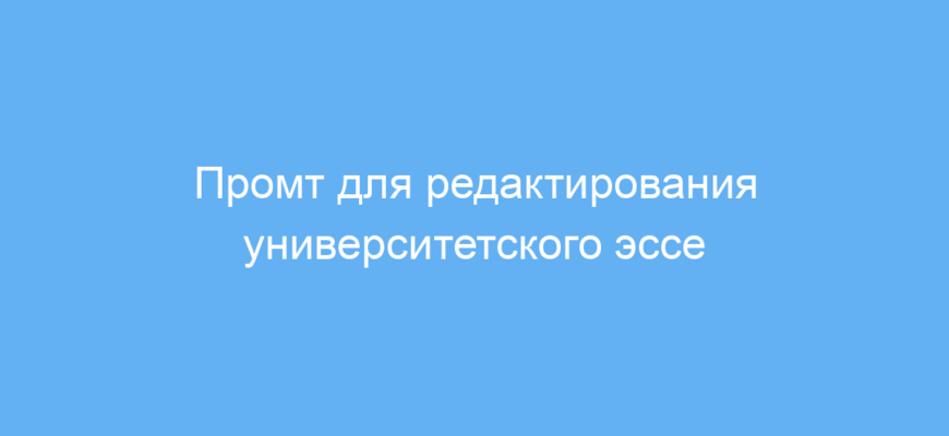 Этот промт упрощает редактуру университетских эссе, помогает быстро исправить ошибки и улучшить стиль текста. Таким образом, повышается качество работы без необходимости тратить много времени на самостоятельную доработку.