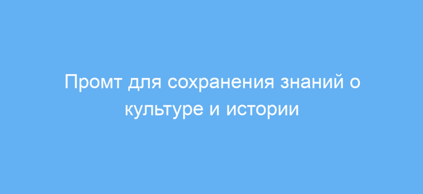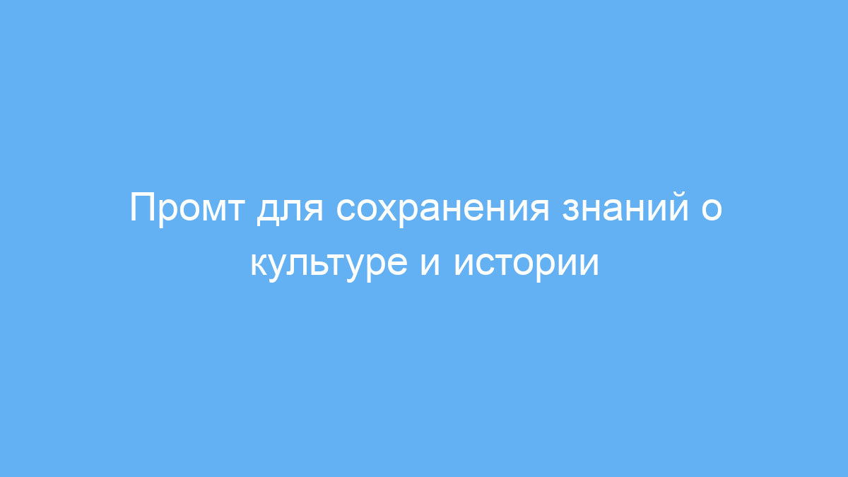 Этот промт предназначен для пользователей, которые хотят получить исчерпывающие и точные ответы от нейросети на вопросы, связанные с человеческой культурой, историей и пониманием мира. Он помогает собирать, сохранять и передавать знания, отвечая честно и подробно на любые запросы.