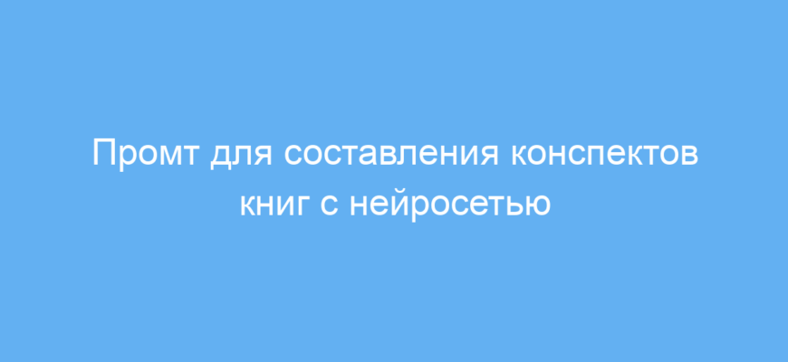 Принцип работы простой: вы даёте нейросети задание выступать в роли помощника по созданию конспектов. Она обрабатывает любой текст книги — будь то художественная литература, научные статьи или профессиональные издания — и выдает сокращённый, отредактированный и структурированный конспект с пояснениями основных идей и значимых концепций.