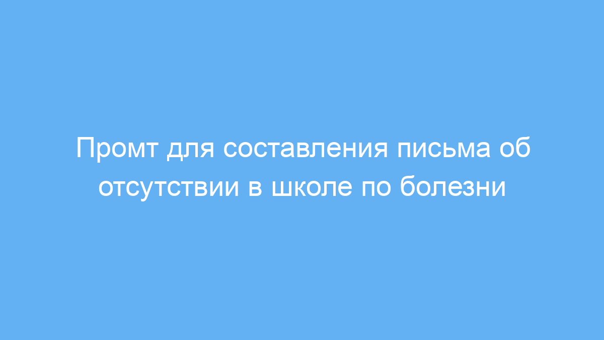 Этот промт предназначен для родителей, школьников и педагогов, которым требуется быстро и вежливо уведомить школу о болезни ученика. Он помогает создавать грамотно составленные письма об отсутствии по причине болезни, которые соответствуют официальному стилю и сохраняют вежливый тон. Благодаря такому письму можно избежать недоразумений с администрацией школы и обеспечить корректное документальное подтверждение отсутствия.