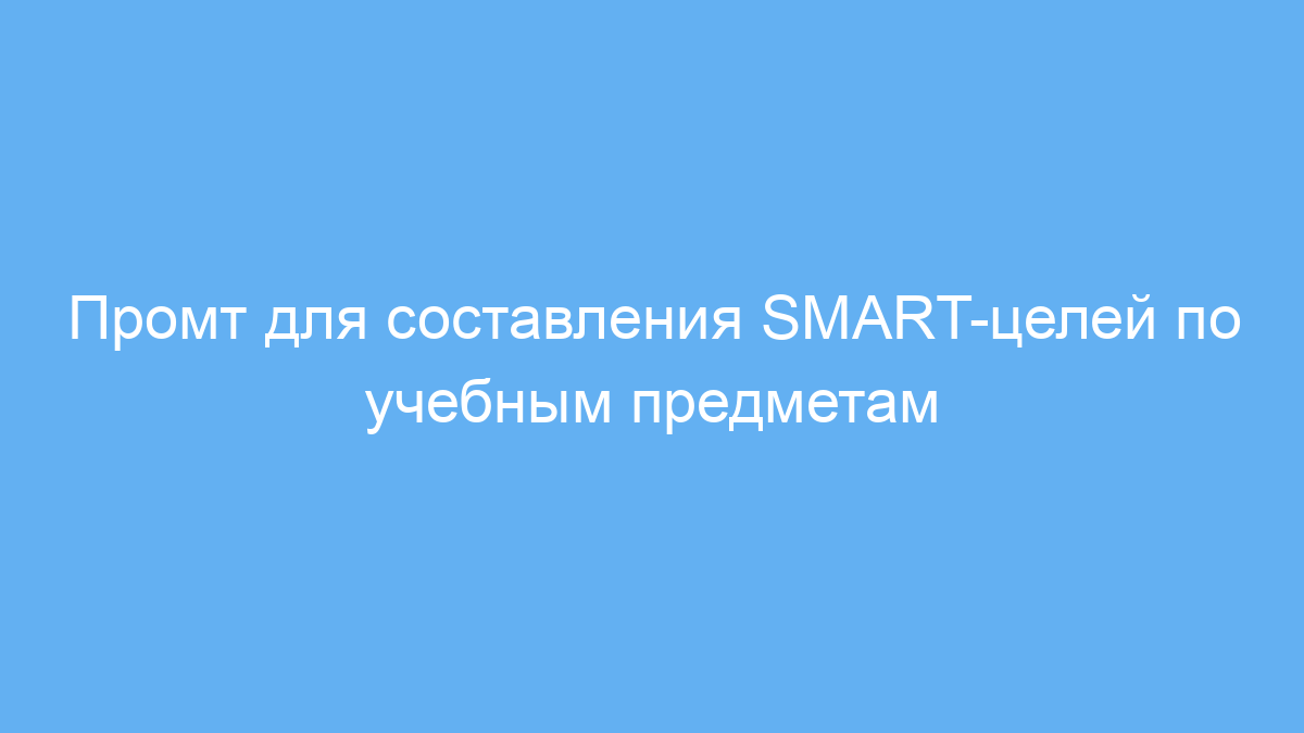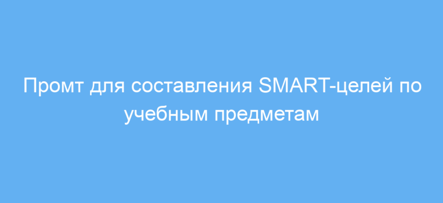 Этот промт предназначен для студентов, школьников и всех, кто изучает несколько предметов и хочет правильно ставить учебные цели. Он помогает сформулировать SMART-цели — то есть конкретные, измеримые, достижимые, релевантные и ограниченные по времени задачи, учитывая текущий уровень знаний и планы на будущее.