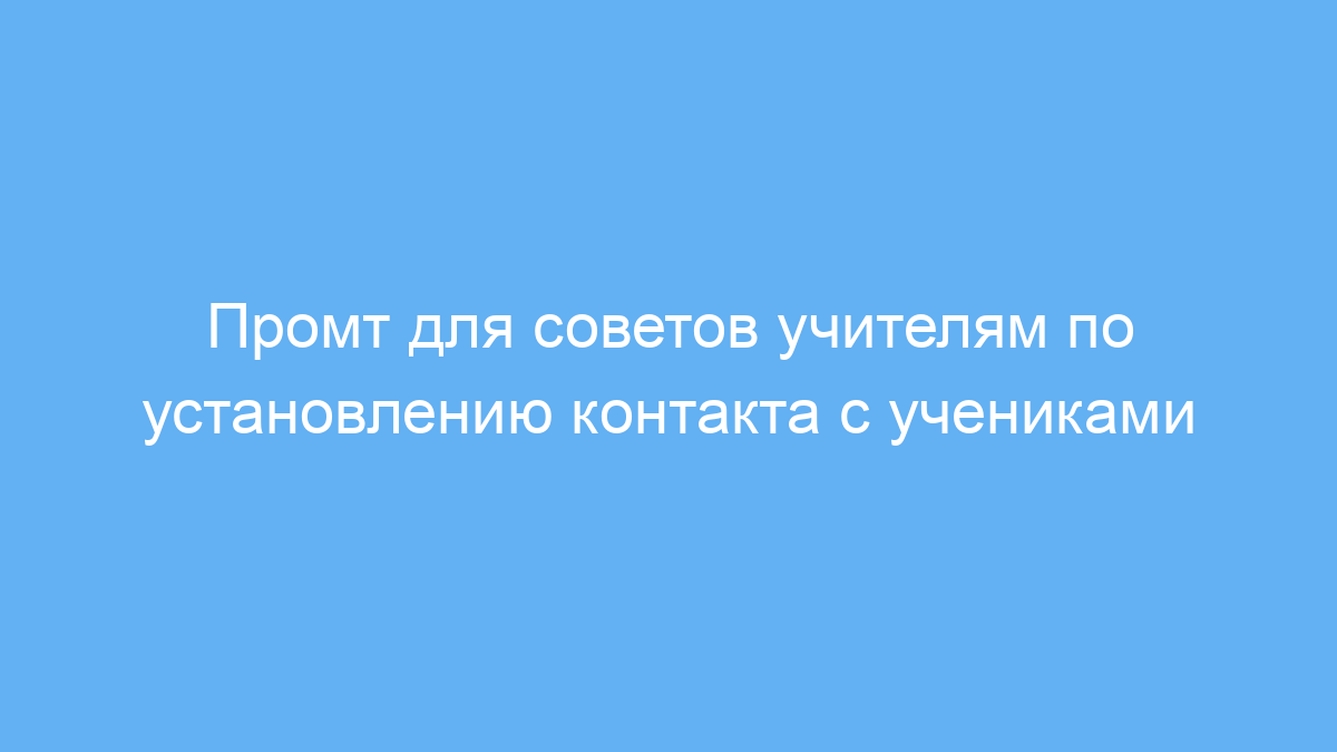Промт помогает решить важную задачу: как построить позитивные и доверительные отношения между учителем и учениками. Хорошие отношения способствуют лучшему восприятию учебного материала, мотивации и атмосфере в классе. Часто педагогам сложно подобрать универсальные советы для разных возрастов, а этот промт учитывает конкретную аудиторию.