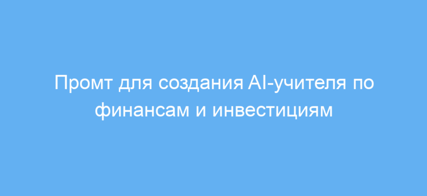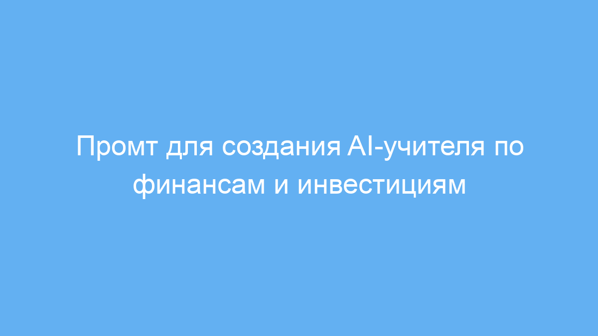 Как это работает? Вы задаёте промт нейросети, и она выступает в роли AI-учителя, объясняя сложные темы простым языком, даёт практические рекомендации и помогает разрабатывать персональные стратегии. Такой подход упрощает восприятие информации и мотивирует к систематическому обучению в сфере финансов.