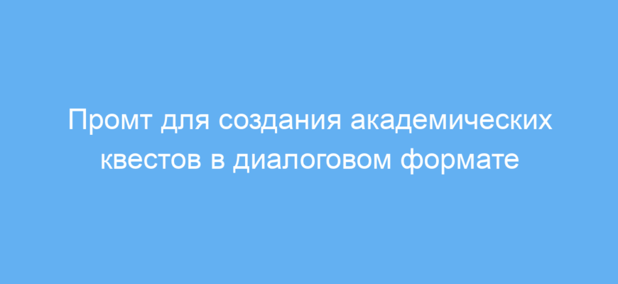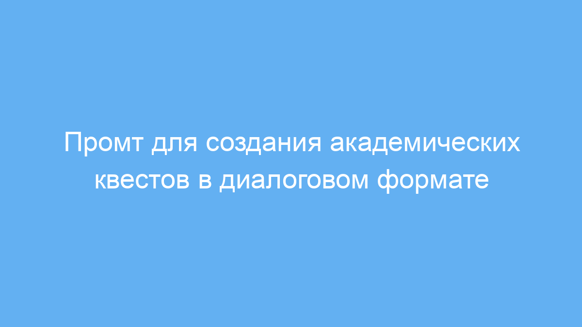 Промт работает как шаблон для нейросети, которая становится виртуальным дизайнером квестов. Он задаёт структуру игры и правила взаимодействия: вопросы дают вызов и требуют самостоятельного мышления, подсказки выдаются лишь по запросу, и всё основано на проверенных знаниях. Пользователь задаёт предмет и цель обучения, выбирает уровень сложности, после чего начинается квест. Такой формат стимулирует активное участие и глубокое усвоение информации.