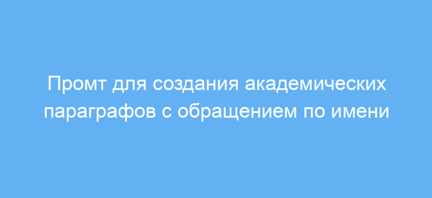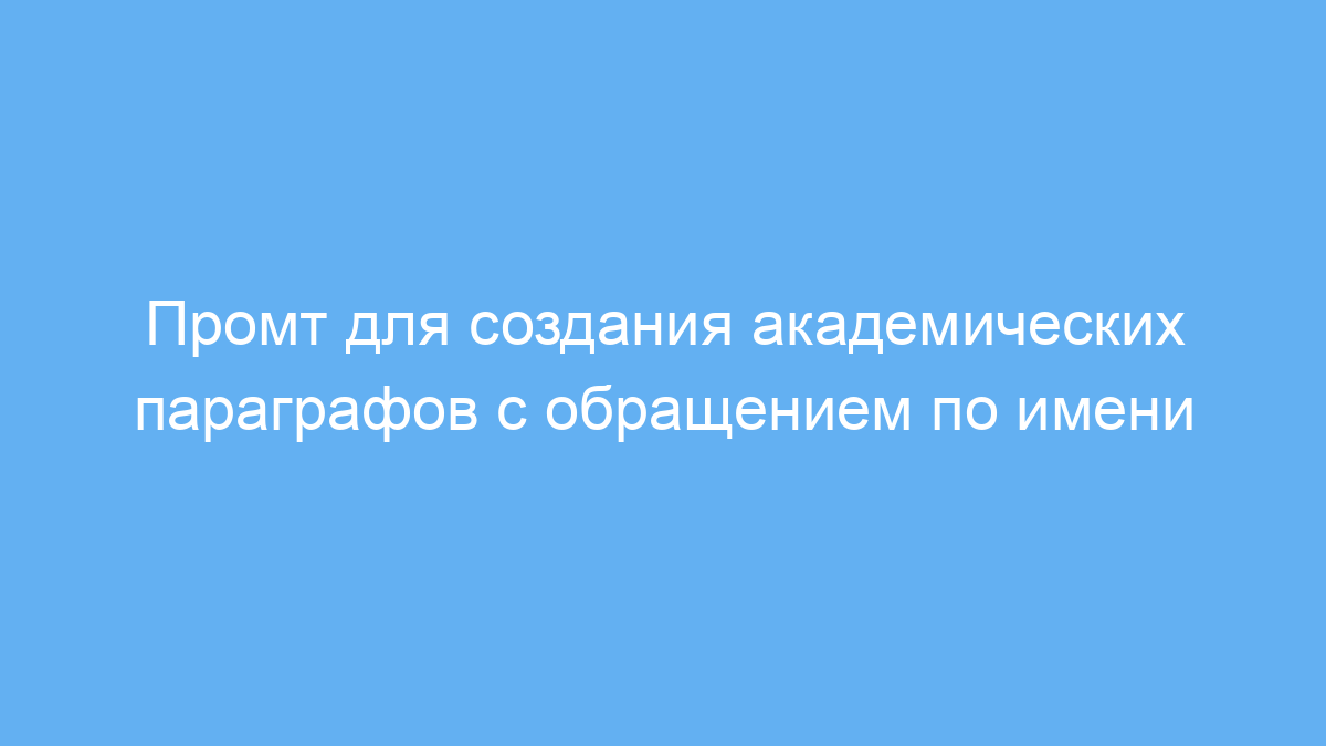 Этот промт создан для студентов и авторов, которым нужно быстро и качественно написать академические параграфы. Он помогает структурировать мысли и оформлять текст в учебном стиле, обращаясь прямо к пользователю по имени, что повышает персонализацию и удобство взаимодействия.