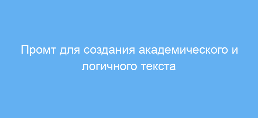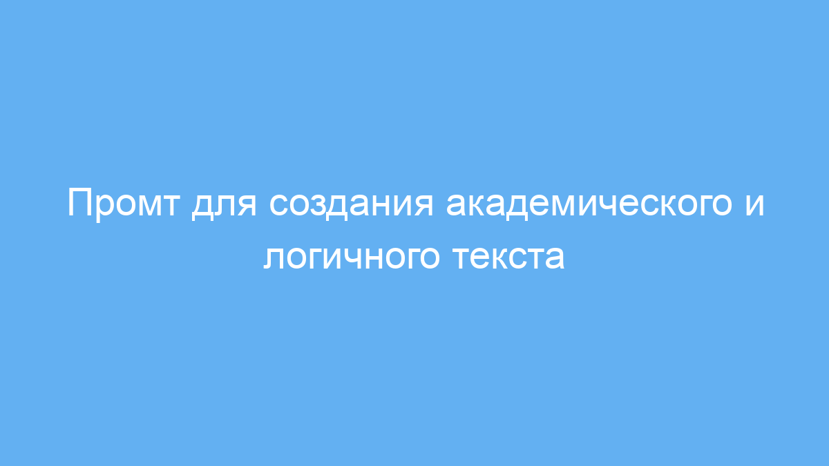 Этот промт существенно экономит время и силы, обеспечивая высокое качество текстов с академической структурой и логикой. Он помогает создавать ясные и информативные материалы без лишних ошибок и повторов, что особенно важно для профессиональной и учебной деятельности.