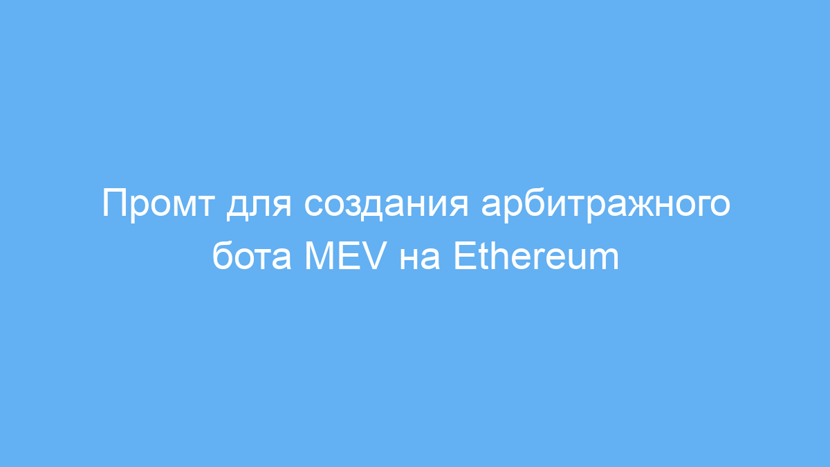 Промт помогает решить задачу автоматизации поиска и использования возможностей арбитража в блокчейне Ethereum. Это особенно актуально для разработчиков, заинтересованных в создании эффективных торговых стратегий и получении прибыли с помощью MEV-ботов.