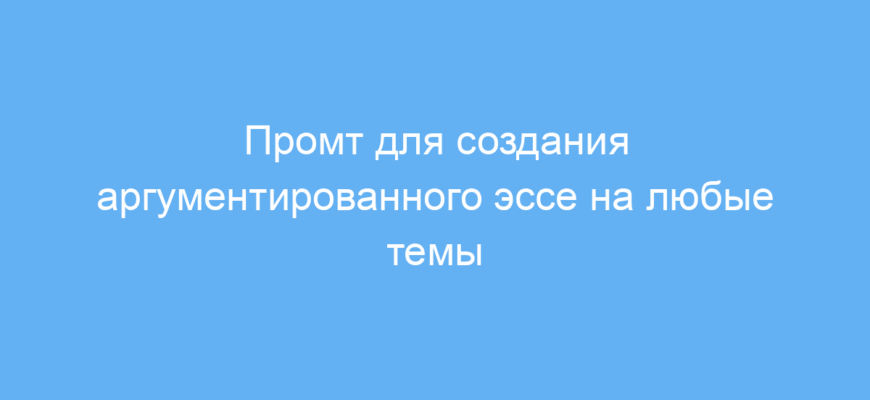 Данный промт существенно ускоряет и облегчает процесс создания аргументированного эссе. Он помогает не только выстроить структуру текста и подобрать доказательства, но и адаптировать стиль в соответствии с нуждами пользователя. Благодаря поэтапному взаимодействию и добавлению выразительных элементов (метафор, вариативности предложений и юмора) итоговое эссе получается более живым и естественным, что особенно важно для учебы и публицистики.