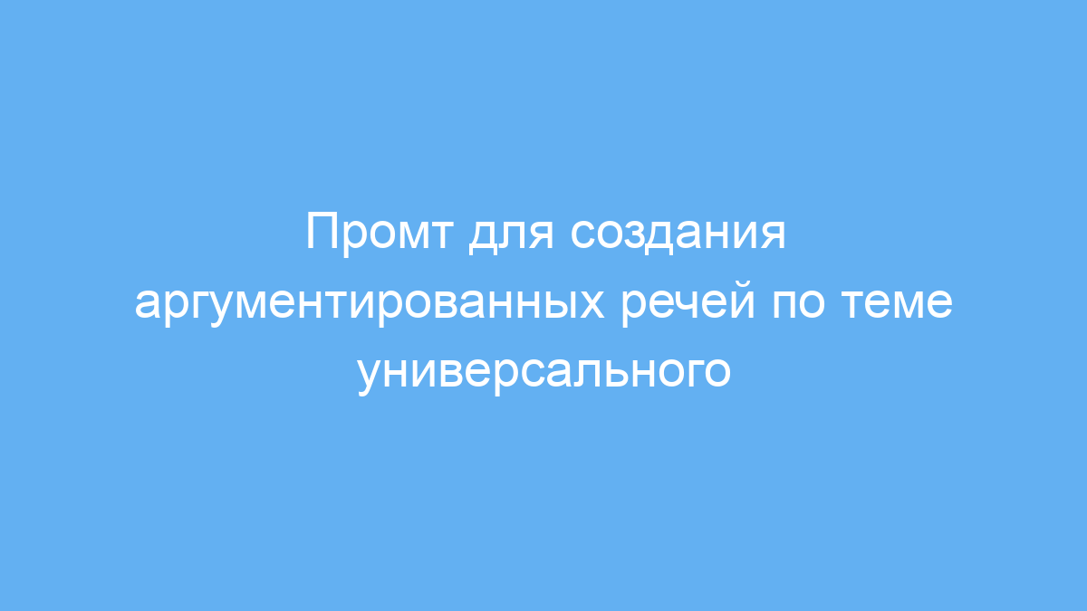 Этот промт предназначен для участников дебатов, студентов, преподавателей и всех, кто хочет быстро получить структурированные аргументы и полноценные речи по сложной теме — универсальному базовому доходу. Он помогает систематизировать мысли, развить убедительную позицию и подготовиться к обсуждению.