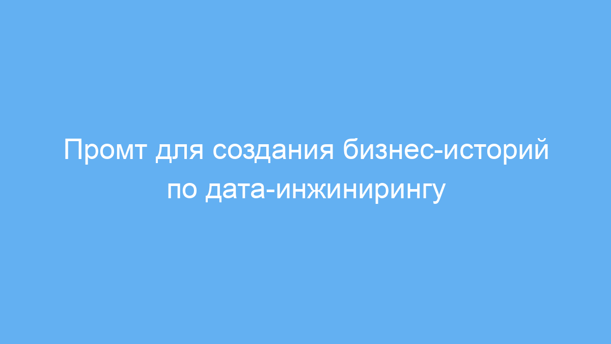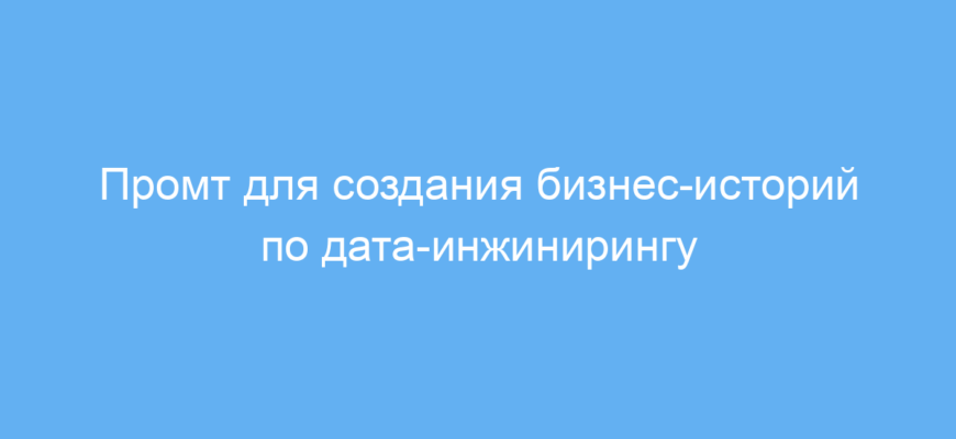 Этот промт предназначен для бизнес-аналитиков, инженеров данных и проектных менеджеров, работающих с проектами дата-инжиниринга в Agile-среде. Он помогает структурировать бизнес-истории таким образом, чтобы их было проще понимать, реализовывать и тестировать. Это способствует улучшению коммуникации между командой и заказчиками, а также повышает качество и управляемость проектов.