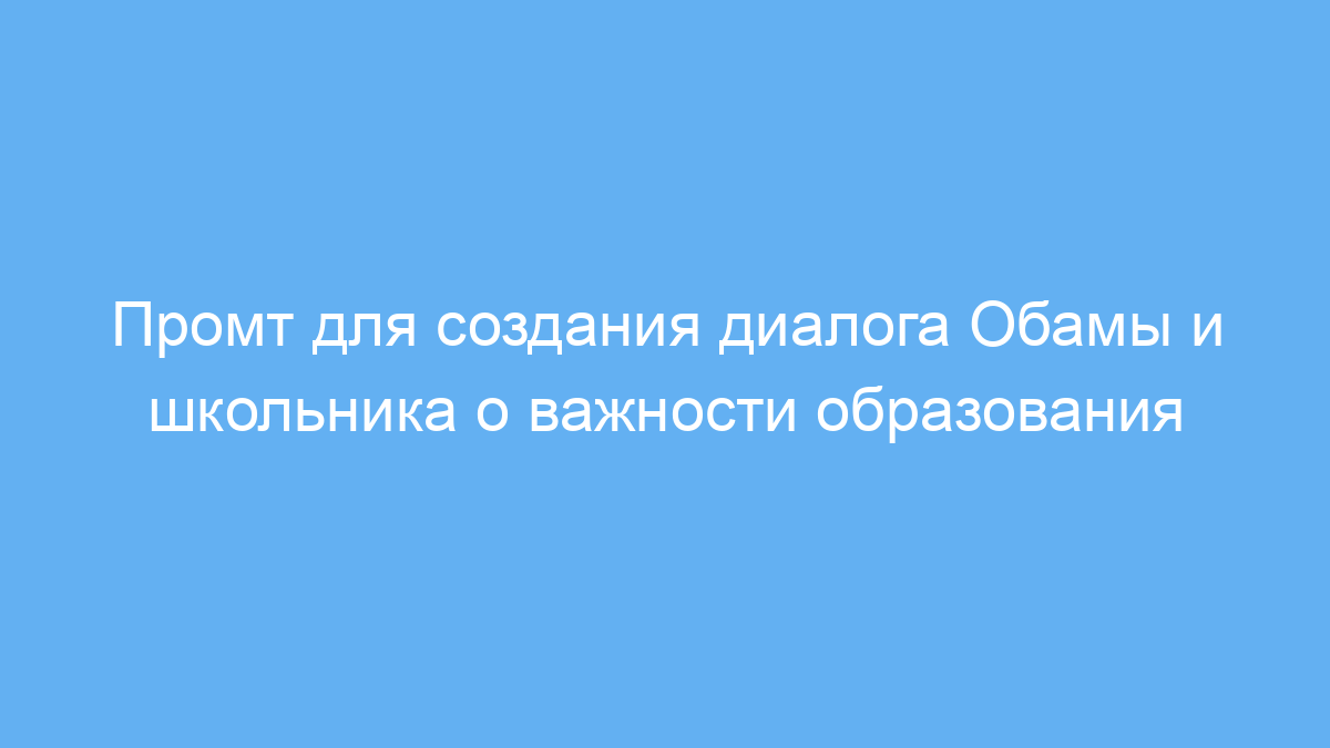 Этот пример поможет создать диалог, где Обама мотивирует школьника продолжать учёбу и объясняет, как знания влияют на будущее карьеры.