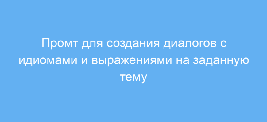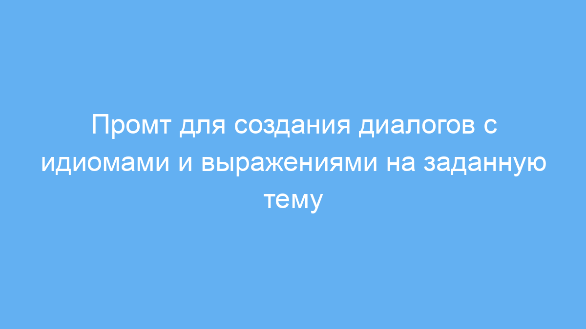 Этот промт экономит время и силы при составлении живых и выразительных диалогов, насыщенных актуальной лексикой и оборотами. Он помогает быстро создавать обучающий или развлекательный контент, усилить владение языком и оживить текст на любую заданную тему.