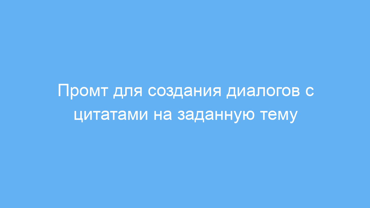 Этот промт разработан для авторов контента, педагогов, блогеров и всех, кто хочет быстро создавать небольшие диалоги с использованием цитат на интересующую тему. Он помогает сделать текст живым, добавляет глубину и провоцирует на обсуждение, что особенно полезно при подготовке учебных материалов, соцсетей или творческих заданий.