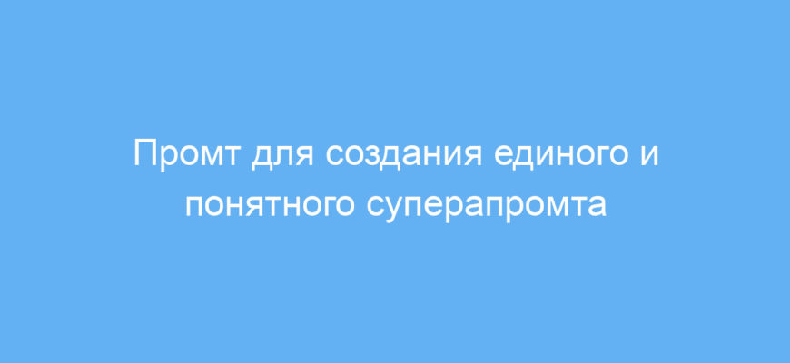 Этот промт предназначен для пользователей, которые работают с нейросетями и хотят объединить несколько промтов в один логичный, понятный и эффективный суперапромт. Он помогает синтезировать различные запросы в единый текст, устраняя повторения и повышая качество взаимодействия с языковой моделью ИИ.