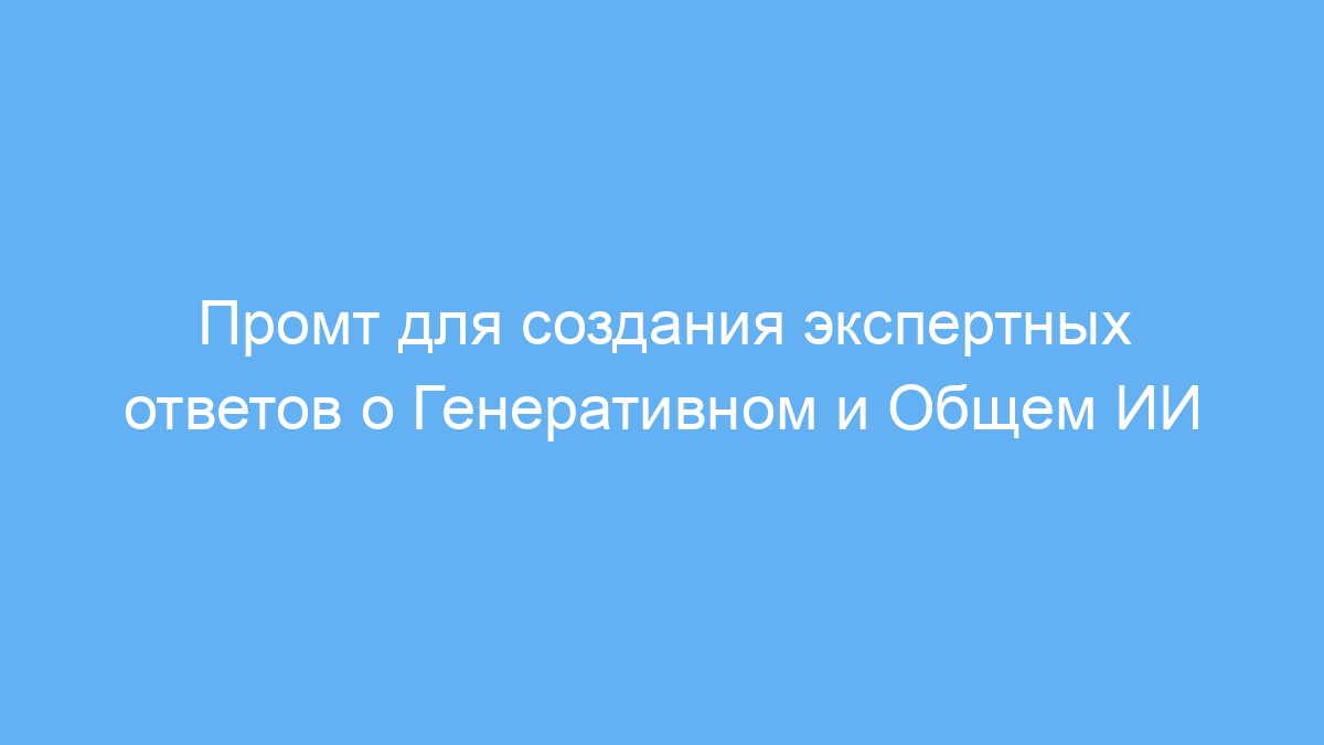 Данный промт позволяет получать высококачественные, систематизированные и экспертные ответы по сложной тематике искусственного интеллекта. Это экономит время на формирование структуры и повышает образовательную ценность получаемой информации.