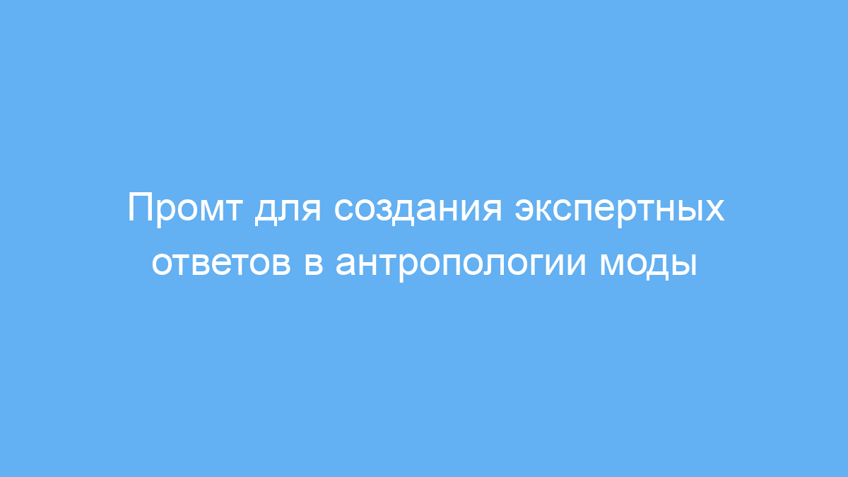 Этот промт экономит ваше время и силы, предоставляя четкие и профессиональные ответы на сложные вопросы в области прикладной антропологии моды. Он помогает создавать экспертный контент, который легко воспринимается и обладает высокой ценностью как для научных, так и для промышленных целей.