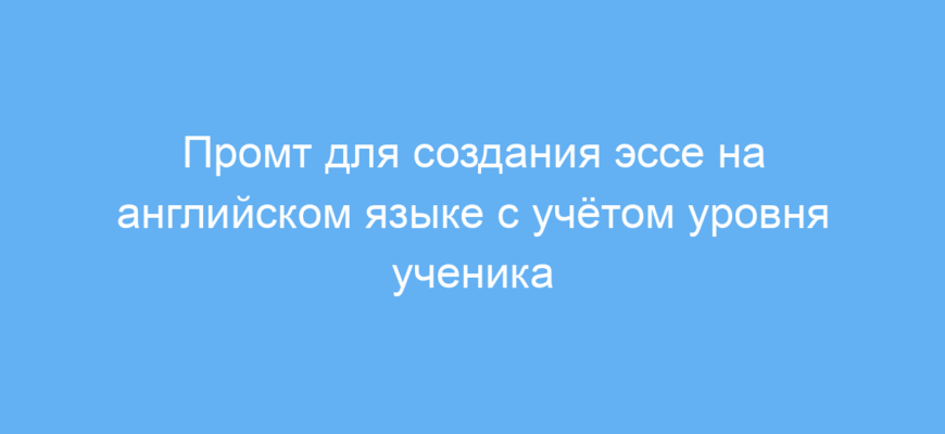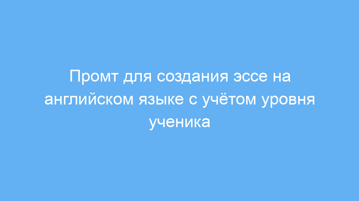Использование такого промта позволяет быстро создавать эссе, идеально подходящие под уровень знания английского языка конкретного ученика. Это ускоряет подготовку учебных материалов и помогает лучше концентрироваться на обучении, а не на поиске подходящего текста. Такой подход сэкономит ваше время и обеспечит индивидуальный подход к каждому ученику.
