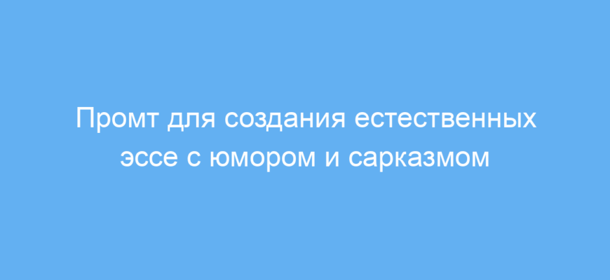Этот промт идеально подойдёт тем, кто хочет получить тексты, максимально похожие на настоящие человеческие эссе. Особенно полезен он для студентов, блогеров, копирайтеров и всех, кто хочет уйти от шаблонных, скучных формулировок искусственного интеллекта. Основная задача промта — заставить нейросеть писать естественно, с юмором, сарказмом и живым языком, словно это реальный человек с собственным мнением, привычками и эмоциями.