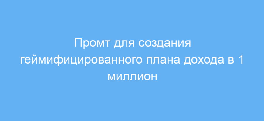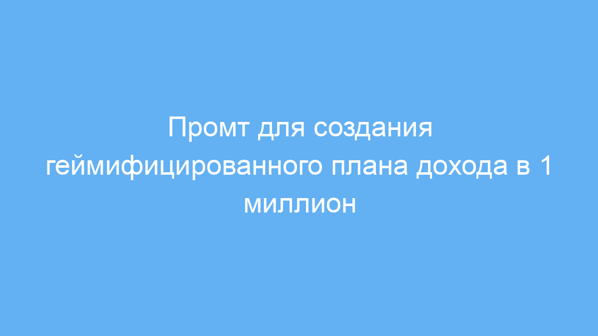 Этот промт предназначен для предпринимателей, специалистов и всех, кто хочет последовательно и увлекательно пройти путь к значительному доходу, используя ограниченный бюджет и свободное время. Он помогает структурировать процесс достижения финансовой цели, разбив его на понятные ежедневные задания. Благодаря использованию геймификации, работа становится более мотивирующей и управляемой.