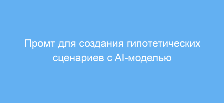 Этот промт помогает быстро и подробно создавать разнообразные сценарии «что если» на любые темы. Он экономит время, развивает аналитическое мышление и помогает увидеть последствия различных гипотетических ситуаций. Использование промта с моделями AI открывает новые горизонты для творчества, обучения и исследований.