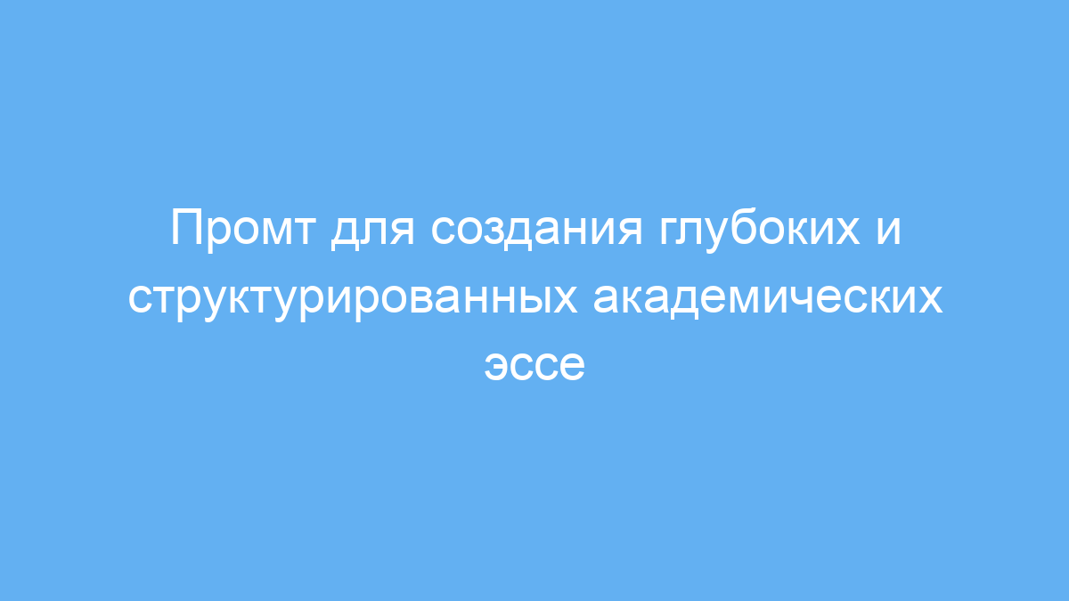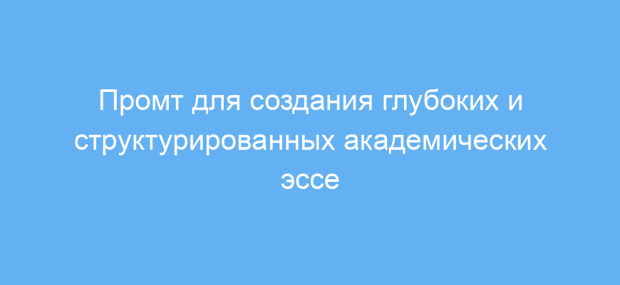 Использование данного промта помогает системно и поэтапно создавать глубокие академические эссе. Он облегчает понимание сложных идей, помогает структурировать материал и формирует критическое мышление. Вы экономите время на поиске подходов и получаете поддержку в преодолении самых частых трудностей при написании научных текстов.