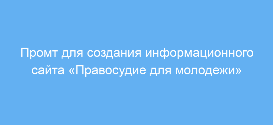 Этот промт предназначен для веб-разработчиков, контент-менеджеров и специалистов, создающих сайты, направленные на помощь подросткам и их семьям в вопросах правосудия. Он помогает быстро сформировать структуру и содержание комплексного информационного ресурса, который учитывает ключевые потребности молодежи в правовой информированности, социальной поддержке и адаптации в обществе.