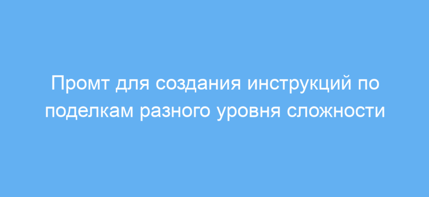 Этот промт создан для тех, кто хочет быстро и удобно получать идеи и подробные инструкции по изготовлению поделок для разных возрастов и уровней сложности. Он помогает мастерам, педагогам, родителям и творческим людям находить подходящие проекты и подробно описывать их этапы. Благодаря этому промту можно сэкономить время на планирование и подготовку мастер-классов, а также обеспечить безопасность и четкость выполнения задач.