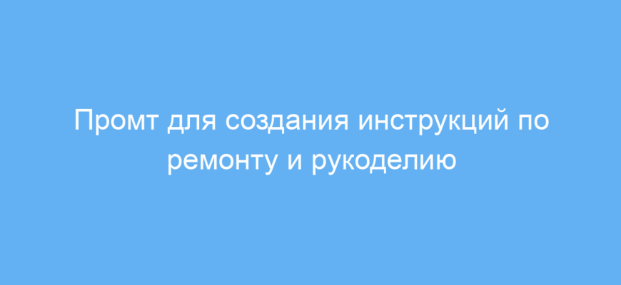 Этот промт значительно облегчает создание понятных и полезных инструкций по ремонту и рукоделию. Он экономит время, помогает избежать ошибок и подходит для любой аудитории, от новичков до опытных мастеров.