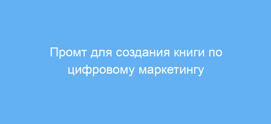 Этот промт предназначен для авторов, блогеров и маркетологов, которым нужно быстро и структурированно создать книгу или подробное руководство по цифровому маркетингу. В первую очередь он полезен тем, кто изучает интернет-продвижение или хочет систематизировать знания для привлечения аудитории и увеличения доходов.