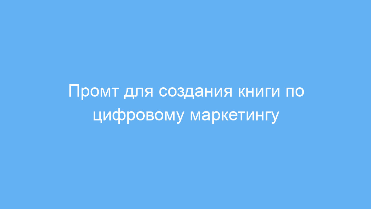 Промт помогает решить проблему отсутствия четкой структуры и содержания при написании материала. Он предлагает готовый план с ключевыми главами, которые охватывают все важные аспекты цифрового маркетинга — от изменения мышления до масштабирования бизнеса.