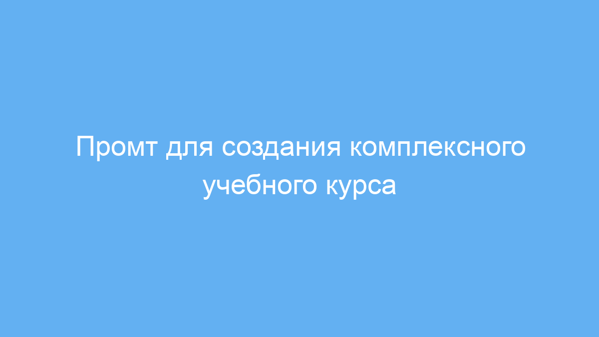Этот промт значительно ускоряет процесс создания структурированного и интерактивного учебного курса. Он помогает не только спланировать содержание, но и добавить разнообразные методы обучения и проверки знаний, что делает курс интересным и эффективным для участников.