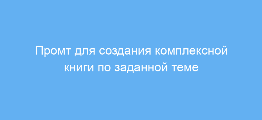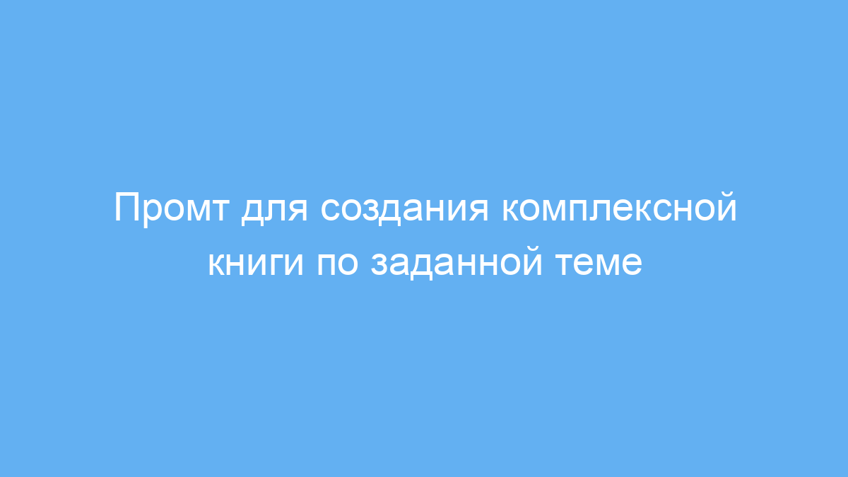 Этот промт предназначен для авторов, контент-менеджеров, преподавателей и студентов, которые хотят быстро и качественно сгенерировать полноценную книгу или большой текстовый проект по конкретной теме. Используя нейросеть с этим промтом, вы экономите время на планирование структуры, разработку глав и формулировку содержания, получая готовый каркас и подробный текст.