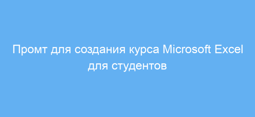 Рекомендуется чётко указать целевую аудиторию курса, например, студентов первого курса без опыта работы с Excel, чтобы получить более адаптированный материал.
