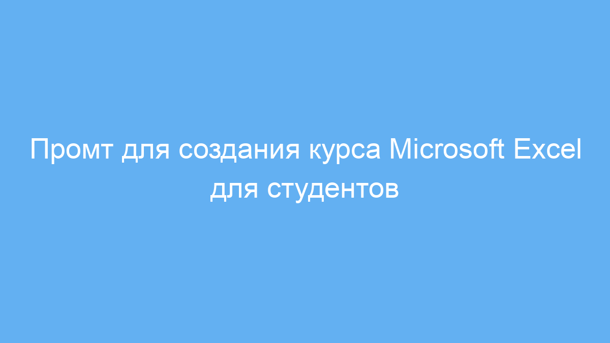 Этот промт предназначен для преподавателей, методистов и создателей образовательных материалов, которые хотят быстро и качественно подготовить учебный курс по Microsoft Excel для начинающих, в частности для студентов первого курса. Он помогает структурировать курс, показывая план занятий, а затем сразу переходя к первому уроку.