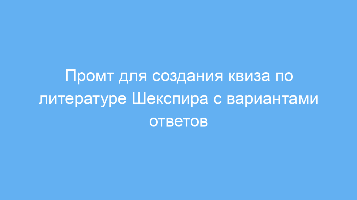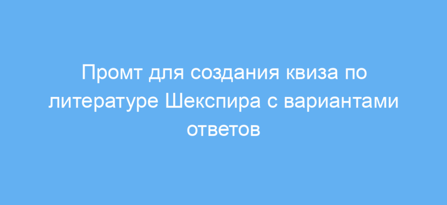 - Перед отправкой промта уточните, если нужна конкретная тема Шекспира (например, «Гамлет» или «Ромео и Джульетта») — это повысит точность вопросов.