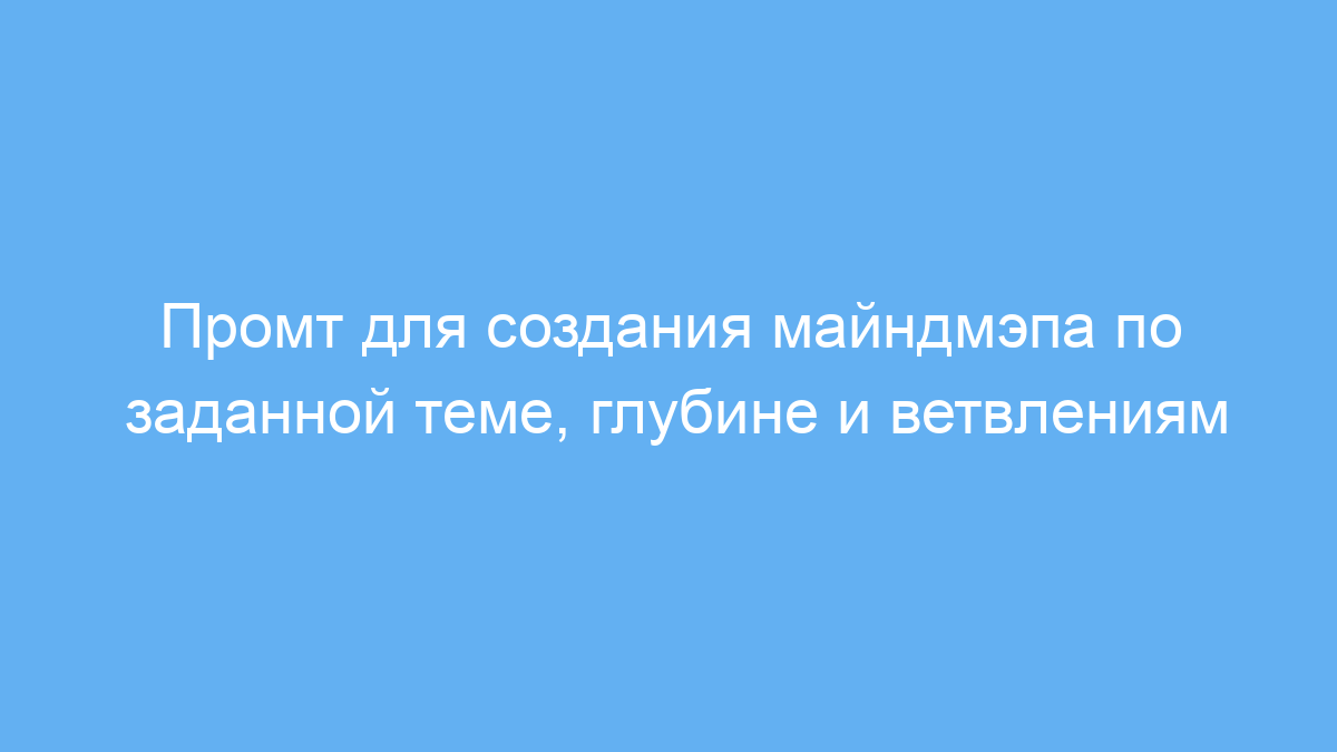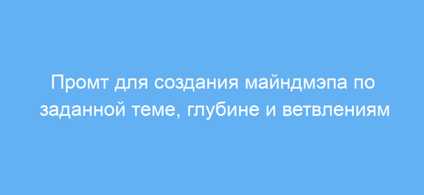 Этот промт предназначен для тех, кто хочет быстро и структурировано представить информацию в виде майндмэпа — графа, где ключевые идеи связаны друг с другом иерархически. Он полезен для студентов, преподавателей, маркетологов, проектировщиков и всех, кому нужно систематизировать знания или проработать тему с несколькими уровнями детализации.