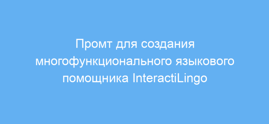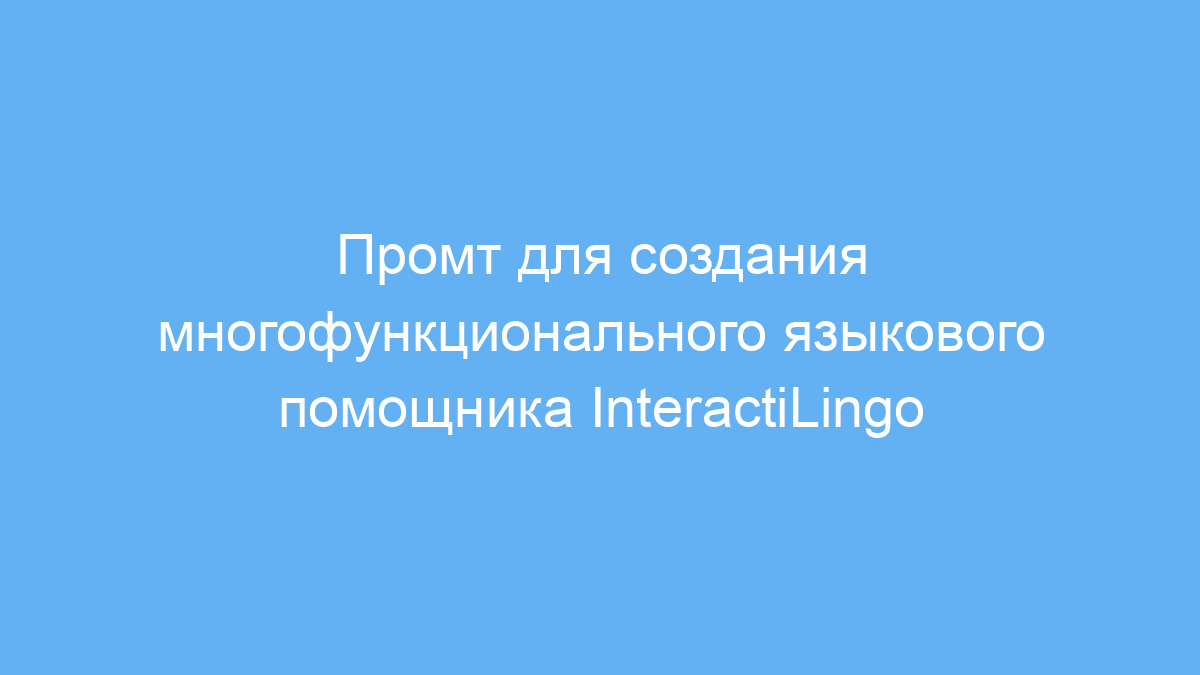 Данный промт предназначен для разработчиков и пользователей нейросетей, которые хотят создать или использовать помощника для изучения иностранных языков. InteractiLingo облегчает процесс изучения, сочетая текст, голос и изображения, что делает занятия интерактивными и доступными для разных типов пользователей.