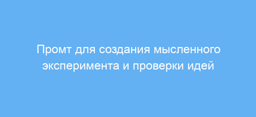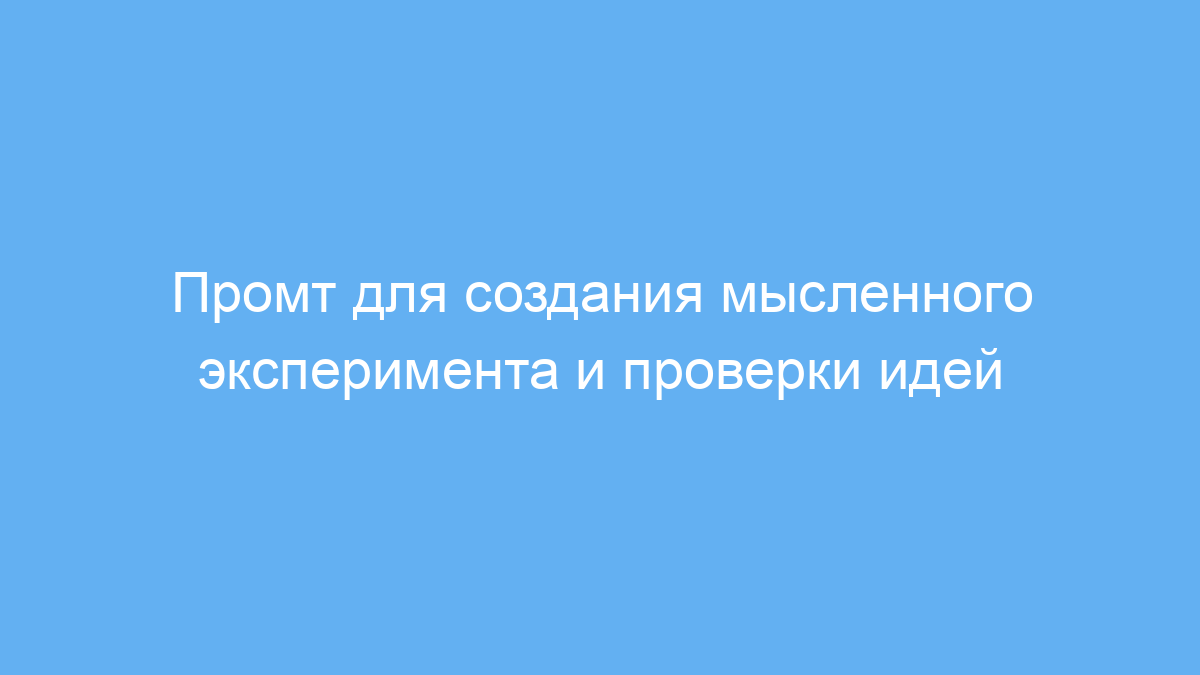 Этот промт помогает структурировать мысли и формировать чёткий анализ любой идеи через мысленный эксперимент. Это значительно экономит время на поиске аргументов и позволяет глубже понять тему сразу при первом запросе.