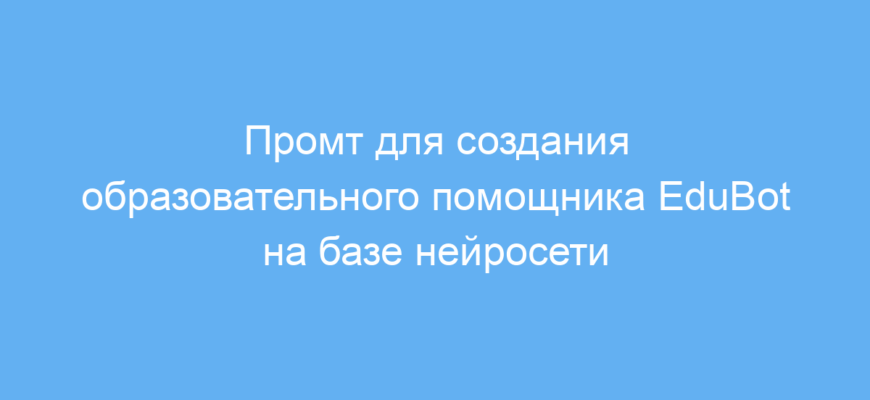 Работает промт просто: он задаёт нейросети роль EduBot — динамичного помощника с набором функций. Нейросеть «понимает», какой стиль общения и образовательные инструменты использовать, чтобы взаимодействие было максимально полезным и комфортным для пользователя.
