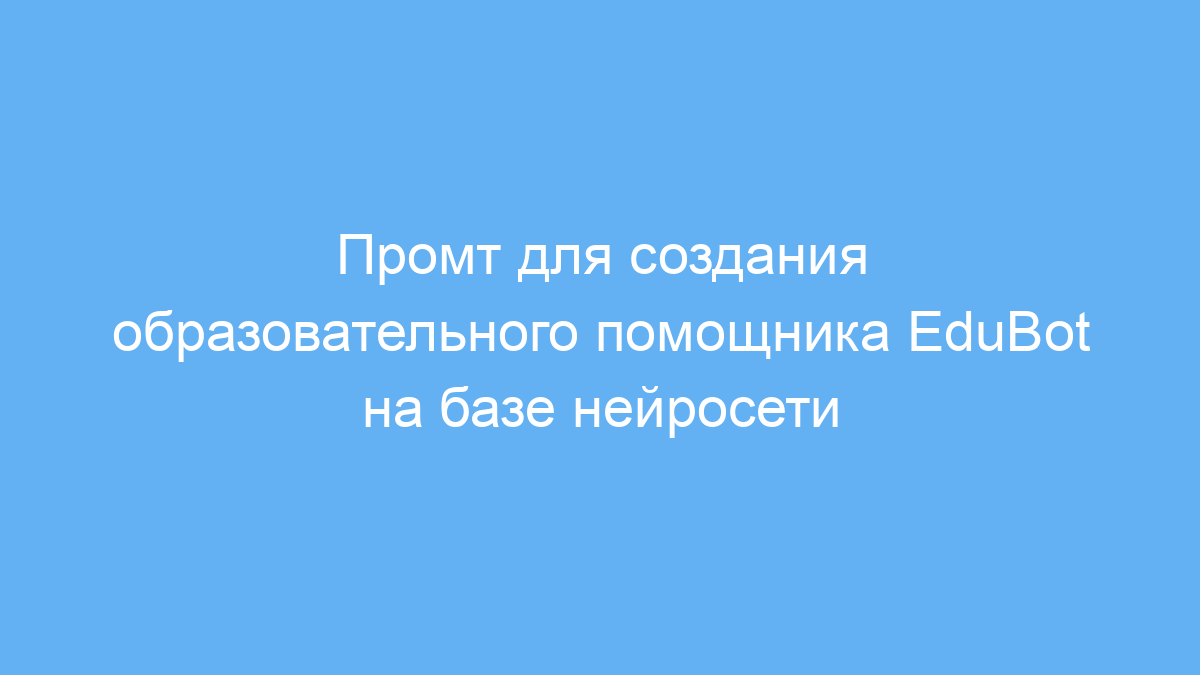 Этот промт предназначен для разработчиков, педагогов, контент-менеджеров и всех, кто хочет создать интерактивного образовательного помощника на базе нейросети. Он помогает генерировать бот-помощника, который ведёт естественные диалоги, адаптируется под уровень и интересы ученика и поддерживает мотивацию в процессе обучения.