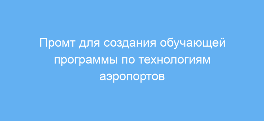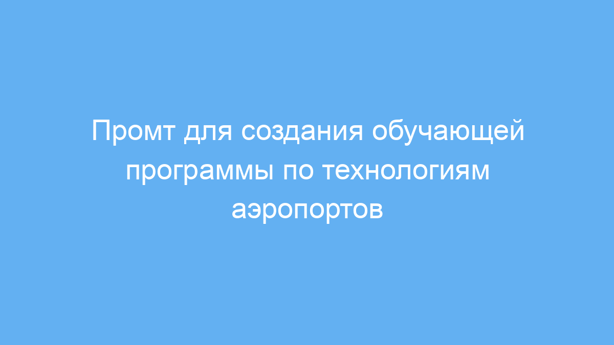 Этот промт разработан для специалистов по закупкам и организаторов обучения, которым нужно быстро создать комплексную учебную программу по современным технологиям и трендам аэропортовой сферы. Он помогает структурировать курс, делая его понятным, интерактивным и эффективным для участников.