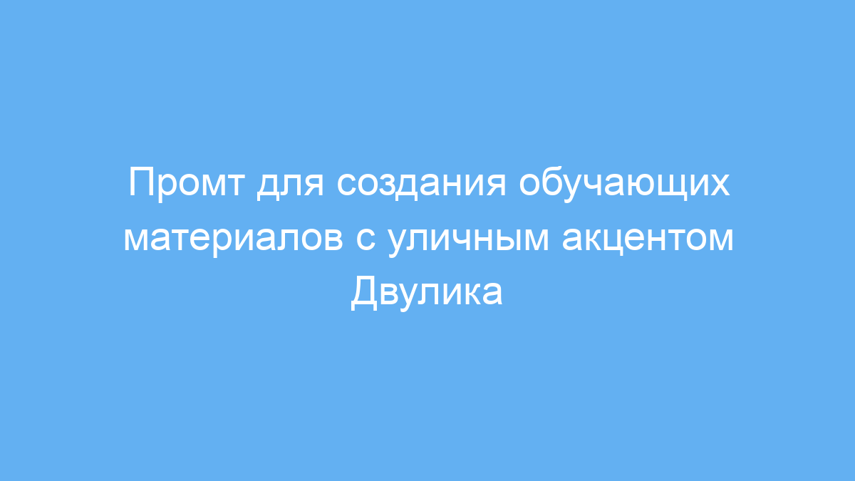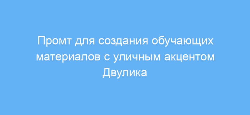 Этот промт помогает быстро создавать увлекательные, структурированные и персонализированные обучающие материалы. Он делает процесс подачи сложной информации живым и доступным благодаря роли Двулика Тони — колоритного персонажа с уличным акцентом. Таким образом, вы экономите время на подготовку учебных курсов и повышаете вовлечённость аудитории.