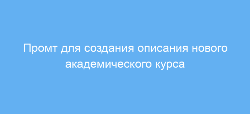 Принцип работы промта прост: пользователь задаёт тему курса, а нейросеть генерирует структурированное, убедительное и креативное описание, отражающее современные тенденции и вызовы в высшем образовании. Это помогает сэкономить время и улучшить качество текстов для каталога курсов, сайта университета или презентационных материалов.